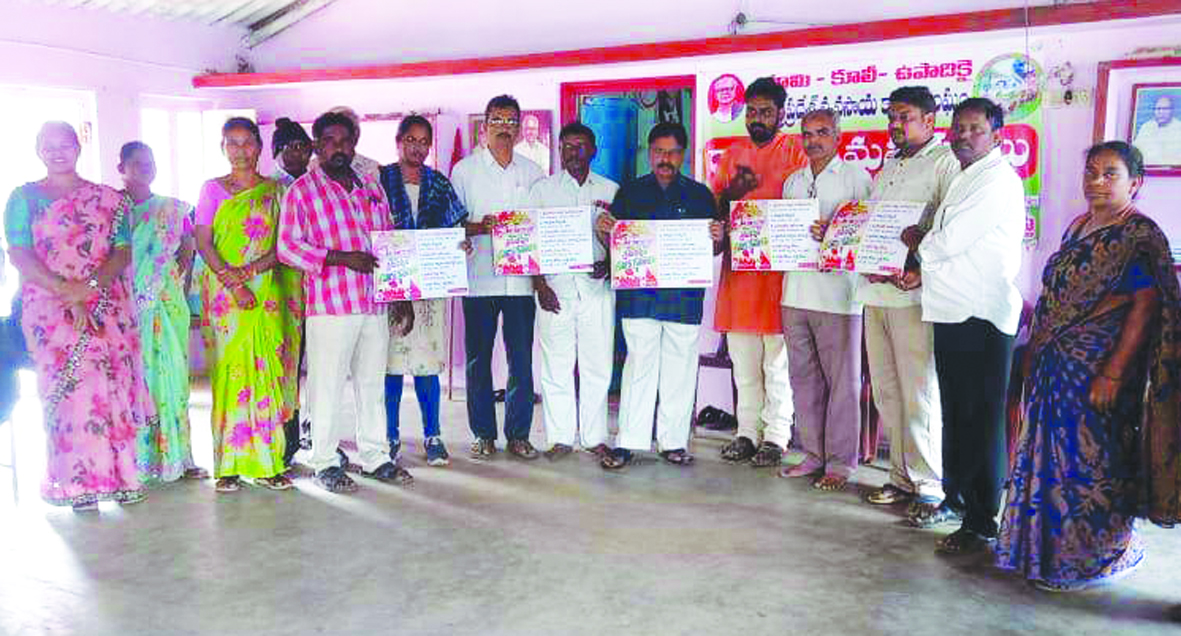 కూలి పెంచాలి, భూమి పంచాలి నినాదంతో జంగారెడ్డిగూడెంలో జరుగుతున్న ఆంధ్రప్రదేశ్ వ్యవసాయ కార్మిక సంఘం రాష్ట్ర మహాసభల గీతాల సిడిని ఆహ్వాన సంఘం గౌరవ అధ్యక్షులు డాక్టర్ వజ్రకిరణ్ శుక్రవారం ప్రజా సంఘాల కార్యాలయంలో ఆవిష్కరించారు. కూలీల స్థితిగతులు తెలిపే ఐదు పాటలు కలిగిన ఈ సీడీలో ప్రముఖ ప్రజా కవులు దశరథ, కంకణాల ఆంజనేయులు, వేంపాటి బ్రహ్మయ్య, సాంబరాజు యాదగిరి, స్ఫూర్తి, శ్రీశ్రీలు రచించారు. ప్రజానాట్యమండలి రాష్ట్ర గాయకుల బృందం ఐవి అనిల్, పి.మంగరాజు, పెద్దిరాజు, జగన్ పద్మ, శాంతి, అనూష గీతాలను ఆలపించారు. ఈ సిడి ఆవిష్కరణ కార్యక్రమంలో ముఖ్యఅతిథిగా హాజరైన వ్యవసాయ కార్మిక సంఘం రాష్ట్ర కార్యదర్శి ఎ.రవి మాట్లాడుతూ మహాసభల విజయవంతం కోరుతూ జరుగుతున్న ప్రచార కార్యక్రమంలో భాగంగా డిసెంబర్ ఏడో తేదీన సాంస్కృతిక కార్యక్రమాలు నిర్వహిస్తున్నామన్నారు. సాంస్కృతిక కార్యక్రమానికి ముఖ్య అతిథులుగా వాగ్దేవి కారుడు తెలంగాణ ఎంఎల్సి ప్రజా గాయకుడు గోరేటి వెంకన్న ముఖ్య అతిథిగా హాజరవుతున్నారని తెలిపారు. ఈ కార్యక్రమంలో ప్రజానాట్య మండల రాష్ట్ర అధ్యక్షులు పి.మంగరాజు, వ్యవసాయ కార్మిక సంఘం జిల్లా కార్యదర్శి పి.రామకృష్ణ, జిల్లా అధ్యక్షులు ఎం.జీవరత్నం, ప్రజాసంఘాల జిల్లా నాయకులు ఆర్.లింగరాజు, తెల్లం రామకృష్ణ, ఎం.నాగమణి, వ్యవసాయ కార్మిక సంఘం రాష్ట్ర నాయకులు తామా ముత్యాలమ్మ, తుమ్మల సత్యనారాయణ, ఎ.రాణి, ఎ.ఫ్రాన్సిస్, పి.సూర్యారావు పాల్గొన్నారు.
