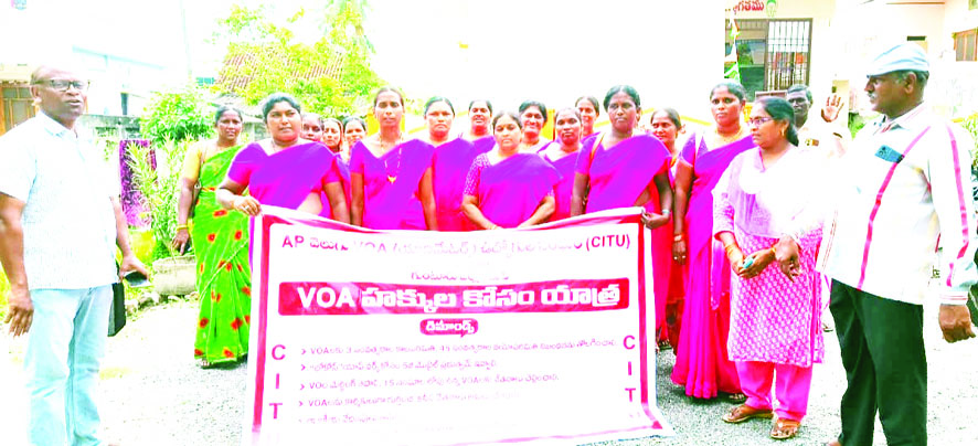 పెదనందిపాడు రూరల్: యానిమేటర్లకు టార్గెట్ల్ పెట్టి వేధింపులకు గురి చేయడం సబబుకాదని యానిమేటర్స్ ఉద్యోగుల సంఘం సిఐటియు జిల్లా గౌరవాధ్యక్షులు దండా లక్ష్మీనారాయణ అధి కారులను డిమాండ్ చేశారు. కాకుమాను మండల యాని మేటర్ల సమావేశం స్థానిక మహిళా మండలి ప్రాంగణంలో శుక్రవారం నిర్వహించారు. సమావేశానికి జిల్లా యాని మేటర్ల సంఘం సహాయ కార్యదర్శి శివకుమారి అధ్యక్షత వహించారు. ఈ సందర్భంగా లక్ష్మీనారాయణ మాట్లాడుతూ యానిమేటర్లకు వేతనం రూ.26,000 ఇవ్వాలని, యాని మేటర్లకు మూడేళ్ల కాలపరిమితిని, 45 సంవత్సరాల వయో పరిమితిని తక్షణమే రద్దు చేయాలని కోరారు. స్వయం సహాయక గ్రూపులలో జరిగిన అవకతవకులకు ప్రతిదానికి యానిమేటర్లనేే బాధ్యులుగా చేయడం సరికాదని, వారిపై రాజకీయ వేధింపులు ఆపాలని, వాని జీతాన్ని వారి పర్సనల్ ఖాతాల్లోనే వేయాలని, రిటైర్మెంట్ బెనిఫిట్స్ ఇవ్వాలని, ప్రమాద బీమా అమలు చేయాలని కోరారు. శివకుమారి మాట్లాడుతూ కోళ్లు, గేదెలు, గొర్రెలు, విత్తనాలను బలవం తంగా అమ్మాలని టార్గెట్ల్ పెట్టి వారిని వేధింపులకు గురి చేయడం సరికాదని అన్నారు. ఈ సందర్భంగా యాని మేటర్ల నూతన కమిటీని ఎన్నుకున్నారు. నూతన అధ్యక్ష కార్యదర్శులుగా ఎన్.రమాదేవి, సుబ్బాయమ్మ, కోశాధికారిగా షేక్ ఆశా, ఉపాధ్యక్షులుగా సుజాత, సరిత, సహాయ కార్య దర్శిగా అనూష, అమల సంఘం గౌరవాధ్యక్షులుగా కందుల శ్రీనివాసరావులను ఏకగ్రీవంగా ఎన్నుకున్నారు. ప్రదర్శన అనంతరం సమస్యలతో కూడిన వినతిపత్రాన్ని ఎంపిపి, ఎండిఒ, ఎపిఎంలకు అందజేశారు.